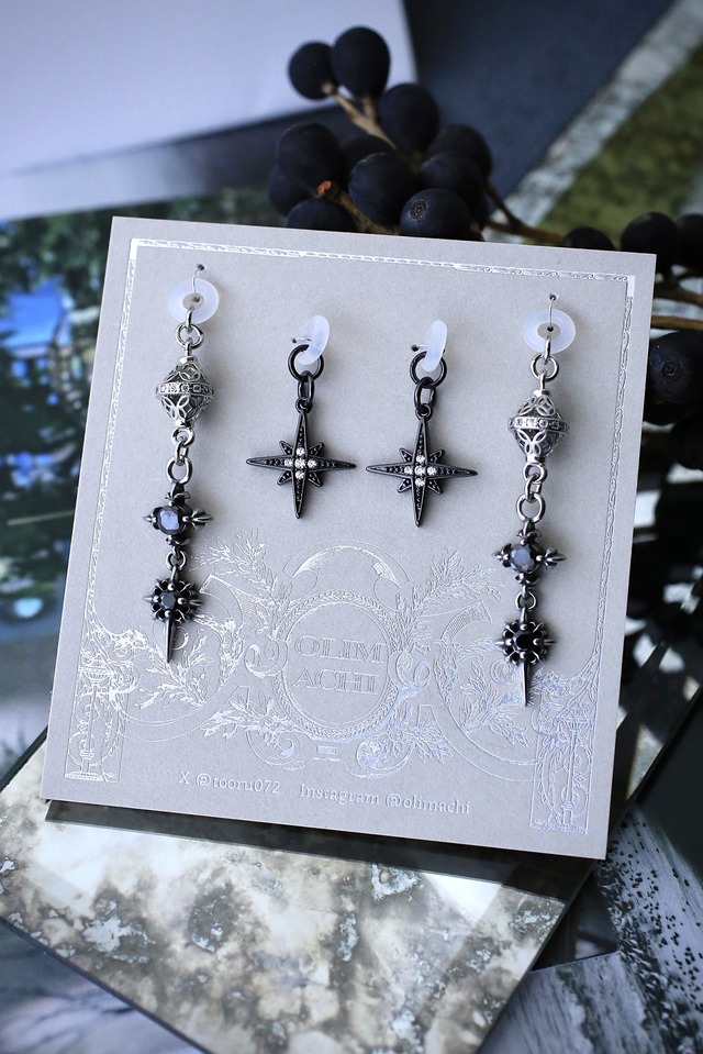 眼鏡チェーンより軽やかな眼鏡チャーム。 月と流れ星の軌跡がモードな雰囲気の中に遊び心を感じさせます。 横には小さな星と黒い雫がきらり。 前から見ても横から見ても美しいアイテムです。 AirPodsのようなワイヤレスイヤホンの紛失防止にもおすすめです。 【オプション】 ❁耳飾りオプション ゴムの部分を耳飾りに変更し、眼鏡チャームから耳飾りに変更いたします。 アレルギー対応金具も可能です。 ※ヴィンテージパーツや海外製のパーツは 性質上カケや曇り、キズなどが元々入っております。 ブラス(真鍮)パーツは性質上水分や経年で黒く曇ってきます。 素材の味わいをお楽しみ頂ければ幸いです。