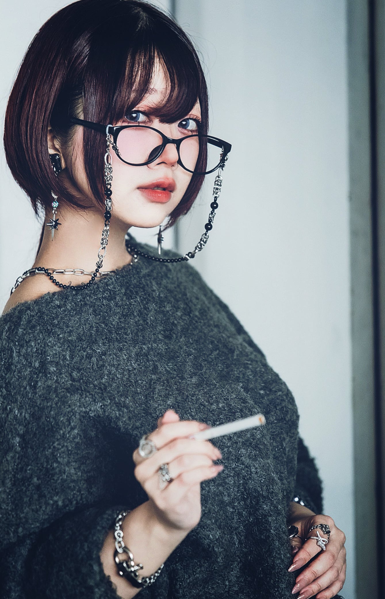 シンプルでいて個性的なブラック&シルバーの眼鏡チェーン。