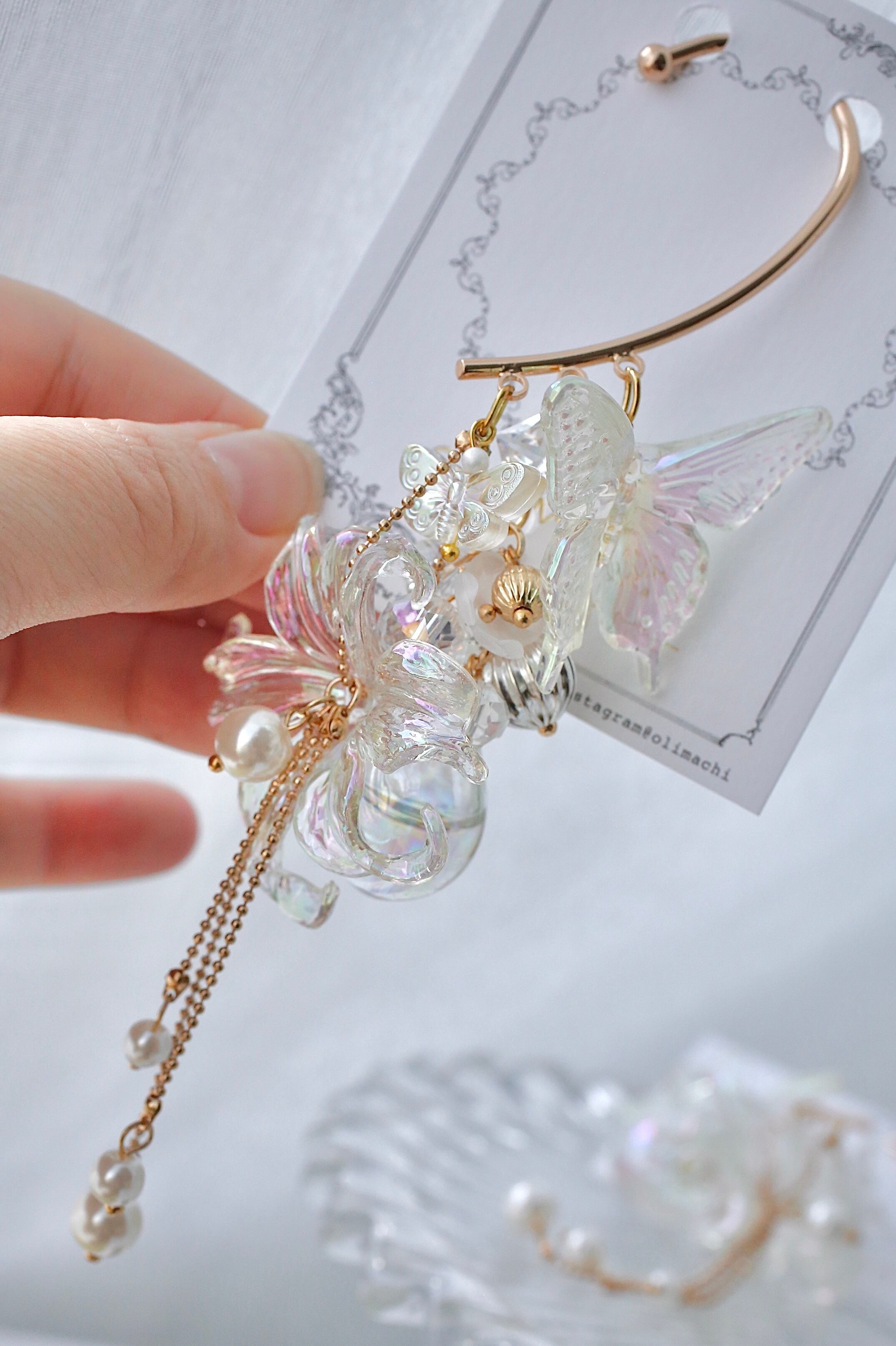 耳に引っかかるだけで華やかになるイヤーフック。