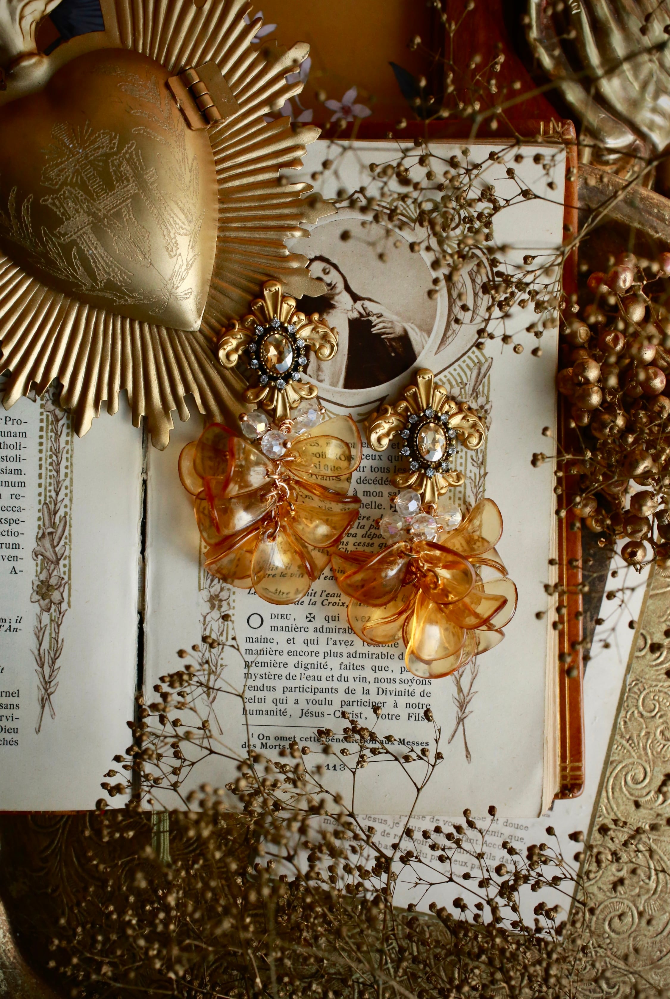 トップは繊細なブラスパーツに煌めくビジュー、